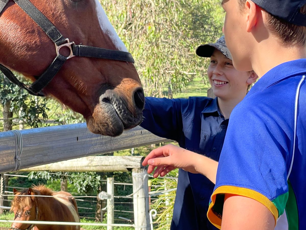 A group of our Year 9 students volunteered at White Rock Peak to support the Reason to Thrive program, which offers Equine Assisted Learning life-skills programs to at-risk young people and women affected by trauma. They dedicated their time to clean-up the yard, ensuring a safe environment for the horses. After their hard work, the boys enjoyed a lovely morning tea, followed by some time feeding and patting the horses. We're proud of our student's commitment to helping others and supporting this wonderful program. They can't wait for their next visit!