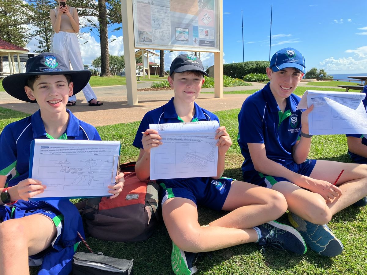 Year 8 Geography classes ventured out of the classroom and into our physical environment on an excursion to Point Danger and Palm Beach on the Gold Coast. Learners investigated the causes of coastal erosion and the different management strategies that have been implemented to minimise the loss of sand from Palm Beach. It was a perfect Autumn day to undertake outdoor study on how development on the foredunes has caused increased erosion creating many social and economic issues. As Geography is very much an evidence-based subject, students conducted a number of experiments determining the direction of longshore drift and wave type and also created some very detailed field sketches identifying erosion strategies utilised at Point Danger and Palm Beach. What a great experience for the boys and a terrific day out!