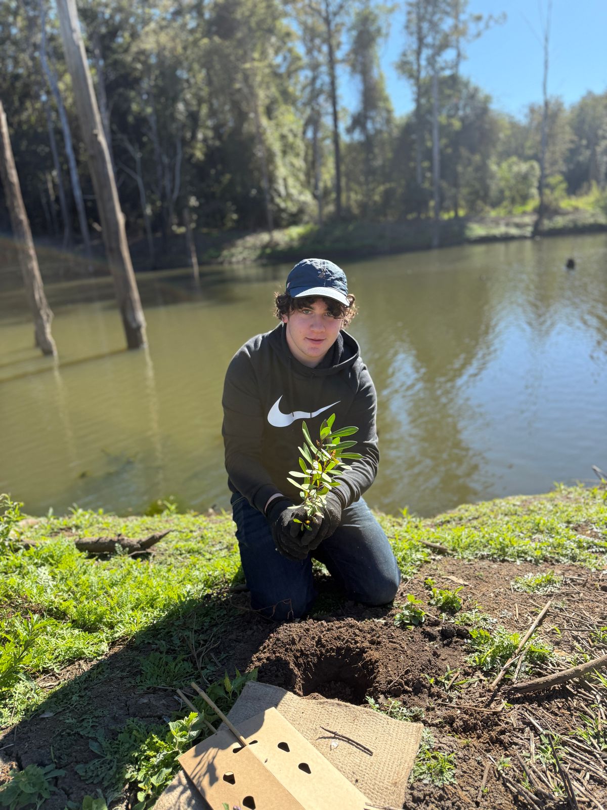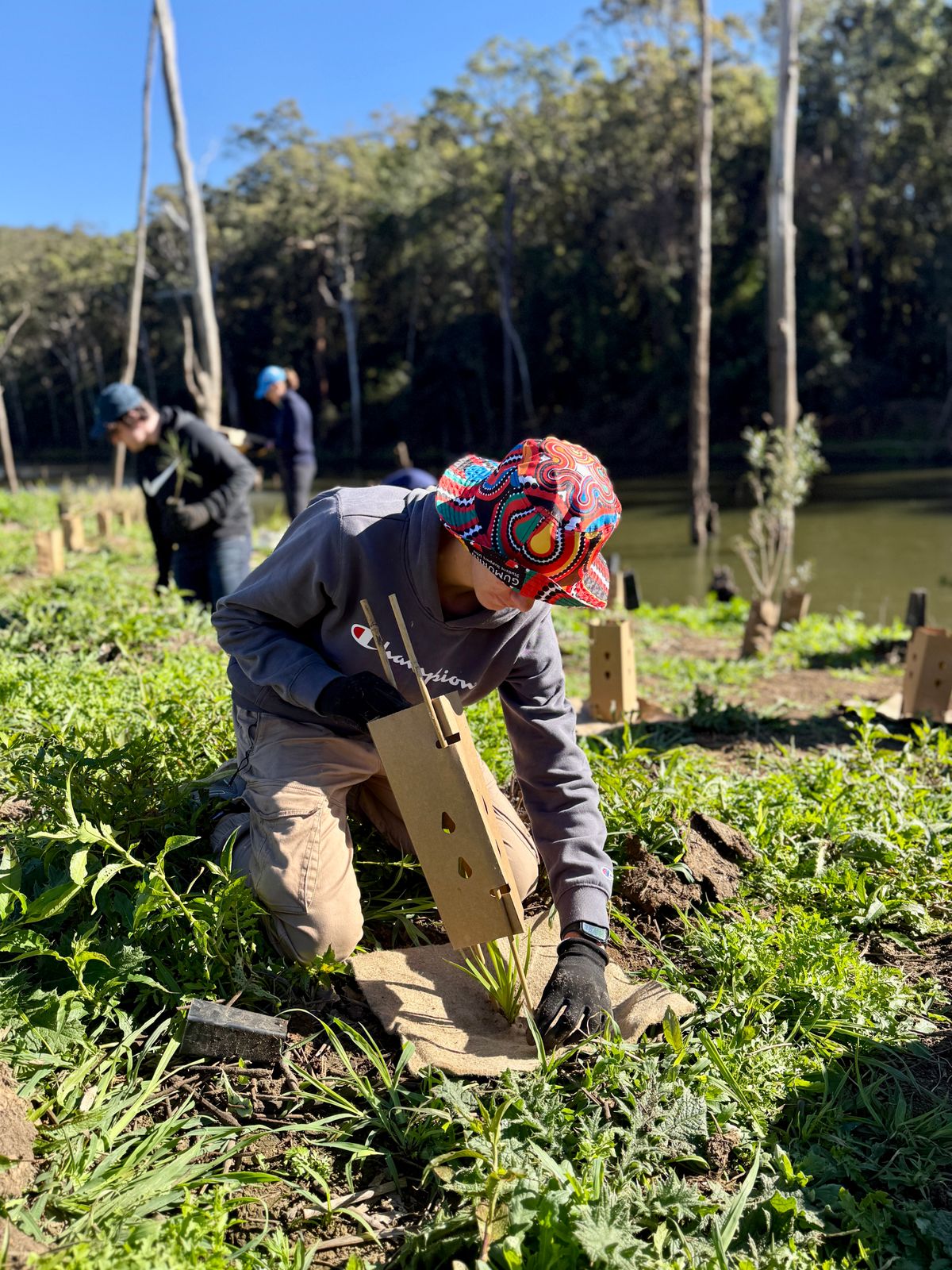 Throughout the day, students planted 120 native trees, carefully applying tree guards and weed mats to support long-term growth in a vulnerable riparian zone on the banks of the Nerang River. This practical task helped reinforce their understanding of key geographic concepts such as catchment health, habitat restoration, and the role of wildlife corridors in supporting biodiversity. They also gained valuable insight into First Nations perspectives on caring for and connecting with Country, which added depth and cultural relevance to their learning.