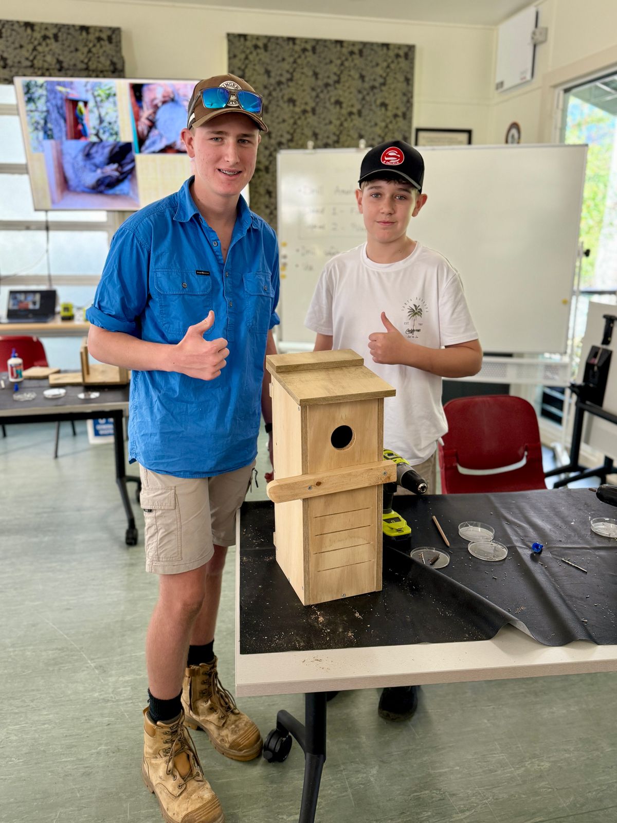 Later, back at the environmental education centre, students learned about hollow-dependent species and the impact of landcover change on native habitats. In response, they constructed 10 nest boxes, designed to provide much-needed shelter for birds, reptiles, and small mammals—recognising that natural hollows in trees can take a century to form.